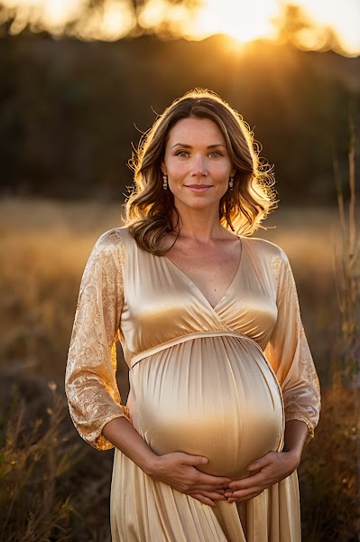 A glowing pregnant woman standing in a peacef 1 (1).jpg