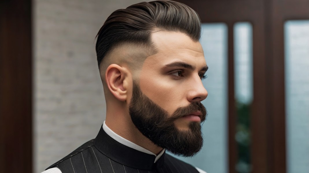A professional fine art photograph depicting a variety of men’s hairstyles. Long, short, mid-length, straight, wavy, curly, and dreadlocks are featured, showcasing diverse styles. The image has a warm, slightly dark palette with soft contr.jpg