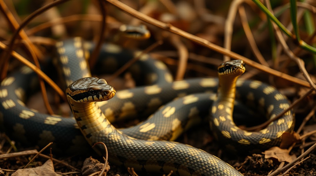 A professional photograph, reminiscent of Associated Press style, depicting snakes in their natural habitat. Warm, slightly dark tones, soft contrast and saturation. Fine art aesthetic, emphasizing natural textures and subtle details.jpg
