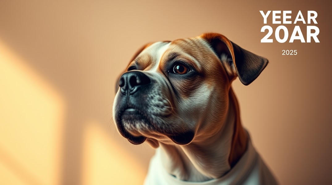 Editorial style photograph, Photo Of The Year quality, featuring a dog wearing a white T-shirt, warm tones, subtle shadows, soft focus, professional and fine art feel.jpg