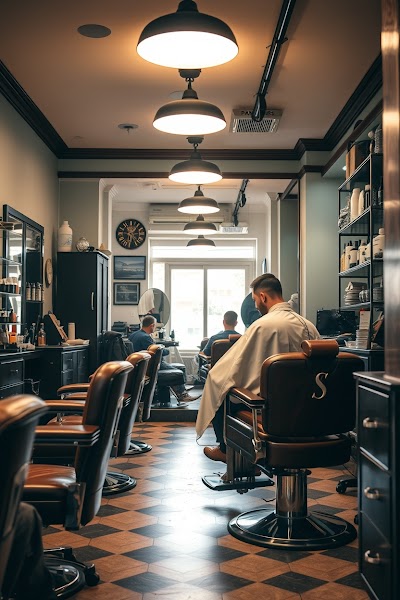 Pastel-toned long exposure shot of a modern-vintage barbershop. A barber expertly trims a client’s hair; tools, leather chairs, and warm lighting create a welcoming atmosphere. The photo is elegantly styled, showcasing gentle, diffused lig.jpg