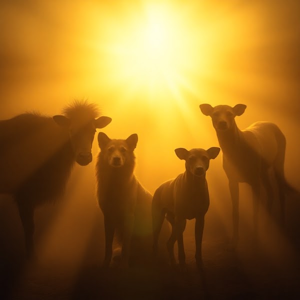 Professional fine art photograph, ethereal and spiritual vibe, warm golden glow, volumetric lighting, soft contrast and saturation, radiant wild animals and pets, visible light beams through dust, mystical feeling, Associated Press style, P.jpg