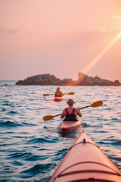 Professional photograph, fine art style, warm pastel colors, soft light, lens flare, kayakers in ocean near rocks, distant horizon, gentle soothing atmosphere, vibrant yet soft colors, photojournalistic style, soft contrast and saturati (3).jpg