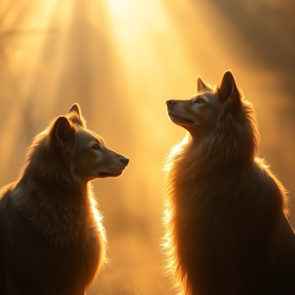 Professional photography, fine art style, warm, slightly dark tones, soft focus. Ethereal, spiritual vibe, volumetric lighting, warm golden glow. Radiant, luxurious wild animals and pets, light beams through fog, mystical aura, soft contra.jpg