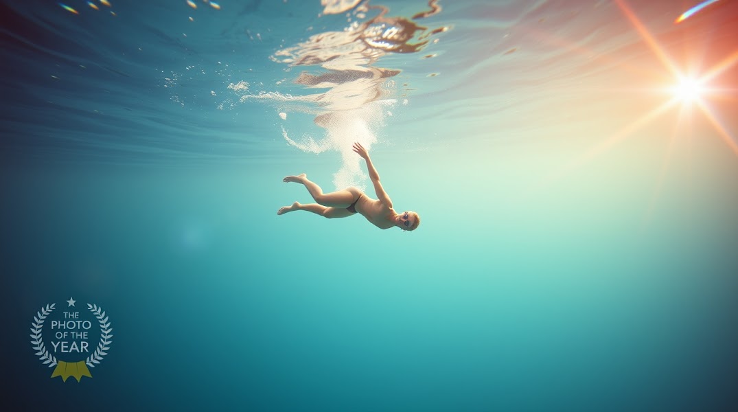 Professional underwater photograph, warm pastel tones, soft light streaks, bright lens flare, a swimmer diving gracefully, showcasing perfect form and technique, clear blue water, gentle and soothing aesthetic, Photo of the Year style.jpg