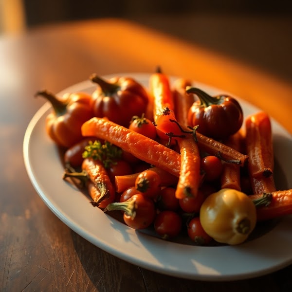Unusual original fine art photograph, warm and slightly dark tones, professional style, golden hour light illuminating luxurious vegetables, soft light, graceful and elegant presentation.jpg